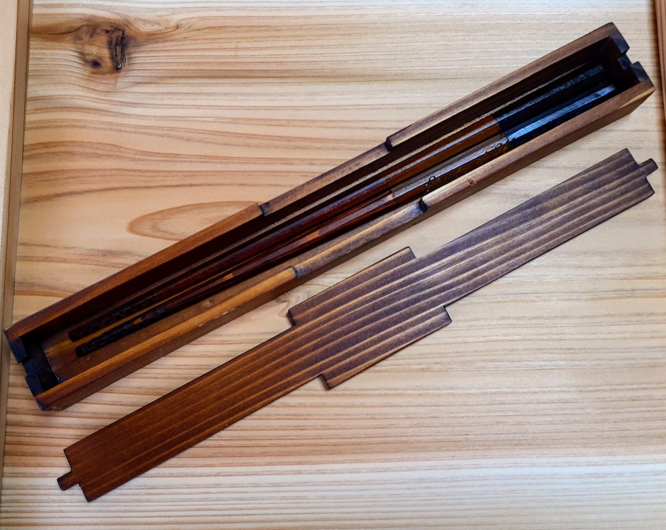 杉材の木目を生かした美しい箸箱、漆塗り箸箱です。伝統的な技法である本漆塗りで仕上げています。高い抗菌作用も備えており、夏場の持ち運びにも安心です。繊細な箸を大切に保管してください。杉材の自然な風合いと漆の光沢が、そのままお食事の時間にも彩りを添えます。